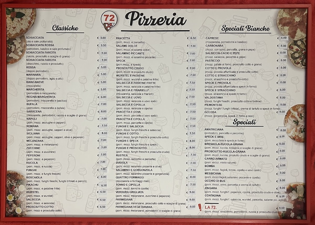 72 Pizzeria d'asporto offers a straightforward and inviting menu centered on traditional Romagnol-style pizzas. This is the kind of place where you can enjoy a comforting, thin-crust pizza with thoughtfully selected toppings, perfect for a casual lunch or a relaxed dinner after exploring Imola.